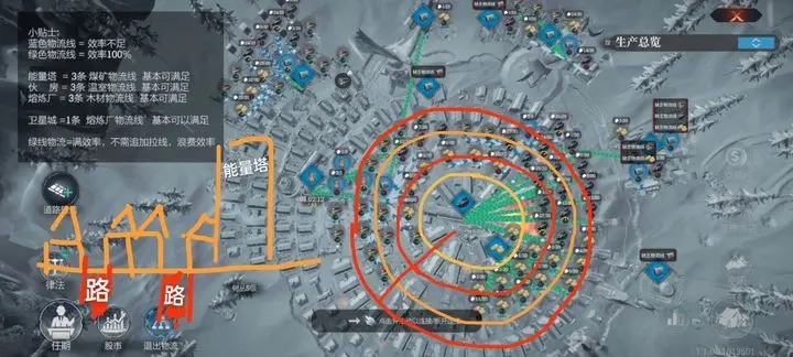 11、规划的时候优先考虑物流,因为物流不能交叉。产能建筑优先放能量塔周围,其他的放在卫星城也是没有影响的。