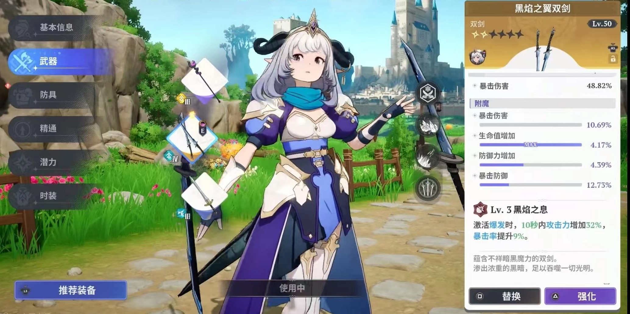 杰莉卡是一名多功能型角色,实际定位会根据武器配置动态变化——既能担任主C负责爆发输出,也能转型为团队增益辅助。她的角色特性与三把可装备武器深度绑定:双剑、细剑和长枪,这三者均为冰属性,但机制侧重点有明显差异。其中,双剑是当前版本最优的主C配置方案。使用双剑时,核心养成目标是激活并强化“冰冻战刃”效果:每次命中目标可降低其暴击抗性,还能触发瞬移绕后机制,大幅提升输出节奏和环境适应能力,从而实现持续压制和高额瞬发伤害。