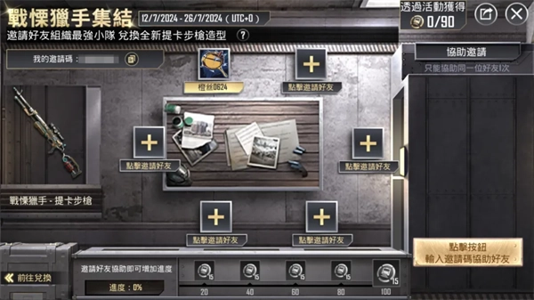本次活动总共可获得90枚战栗猎手币,共分为邀请击协助两种玩法。