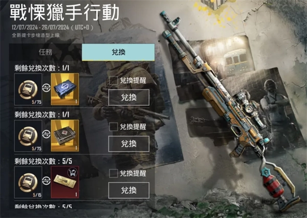 各位特种兵可于兑换商店消耗战慄猎手币兑换战栗猎手-提卡步枪!
