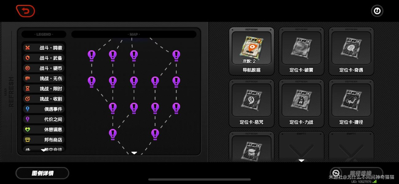 ②当卡牌收集到偶遇事件“大探险家布”的定位卡部分里的“定位卡-恶咒”,并且在第一层刷出该卡牌时,务必注意联动特殊目标中“单局携带三张净化后的卡牌通关”这一任务。若错过此次机会,后续完成该任务会非常困难。此外,这一操作仅限于第一层刷出“定位卡-恶咒”后,在第一层BOSS打完后的休息区(即挚交会谈)中,将其用于第二层路径,才能确保该任务完成。若在第二层刷出该卡牌则无法达成此效果,因为若将其用于第三层,第三层会全部变为“代价之间”,导致没有两次战斗机会来净化卡牌。