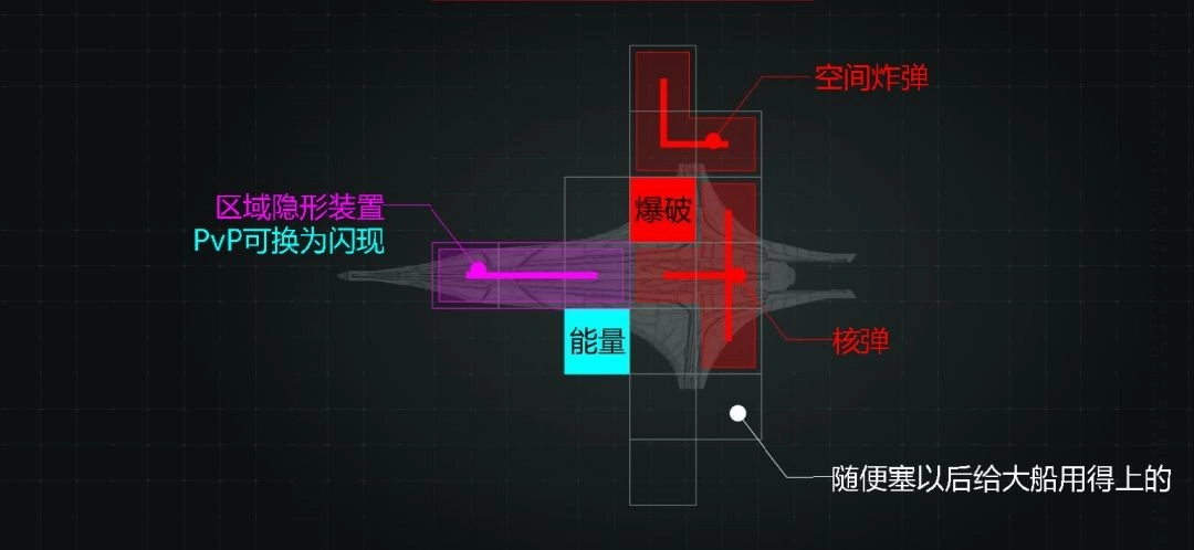 这三个战术均为后期可适配于大型舰船的通用战术,舰船淘汰后仍能继续使用,而且核弹与空间炸弹也与它的二、三技能高度匹配。