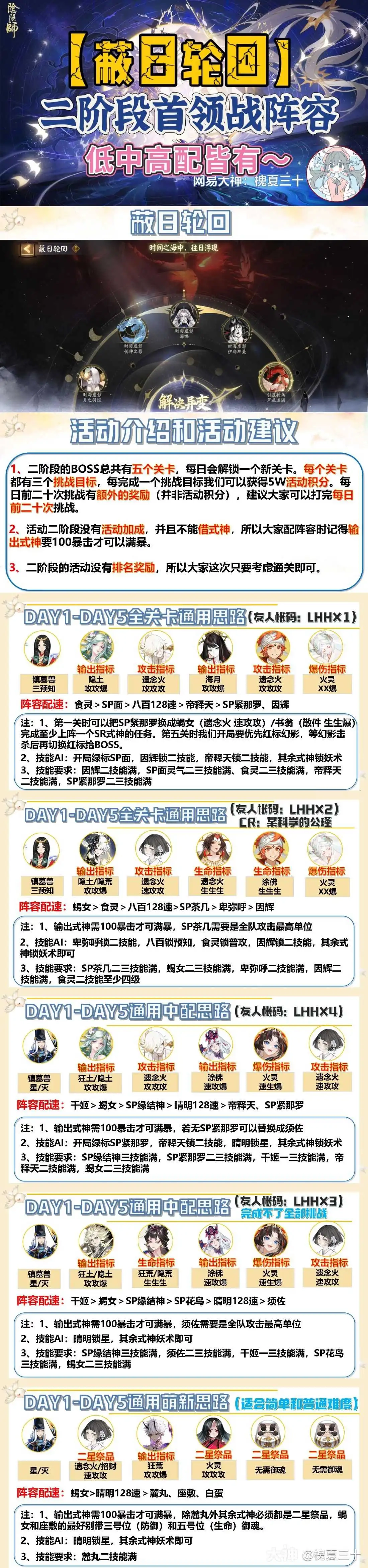 2、活动第二阶段没有活动加成,也不能借用式神,大家搭配阵容时要注意,输出式神得达到100暴击才能实现满暴击效果。