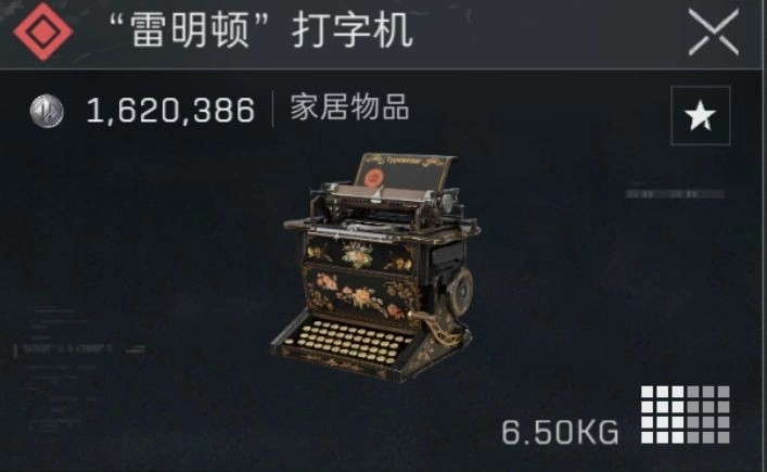 雷明顿打字机是潮汐监狱特有的12格大型红色物品,属于家居类,无法进行交易,价值160万哈弗币,总共有8个固定的刷新位置!