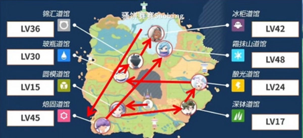 宝可梦朱紫作为宝可梦系列首款开放世界大地图的正统作品(阿尔宙斯传说属于系列外传),打破了传统线性的通关路线——玩家在一周目初期就能自由探索地图上的各个城镇,挑战帕底亚地区的任意道馆。不过,由于GAME FREAK没有设计动态等级系统,喜欢探索地图的玩家很容易不小心闯入高等级区域,体验会比较糟糕(比如10级的草猫刚出东门,就遇到一堆20级的卡蒂狗)。因此,建议新手玩家还是按照常规顺序挑战道馆,这样体验会更好一些。说到底,宝可梦游戏本身没有刷级限制,刷级也是养成玩法的一部分。刻意刷等级、刷经验后再去打道馆固然稳妥,但游戏节奏难免会变得拖沓(总不能到一个地方先刷两小时经验再继续吧?)。想必有不少玩家不想刷宝可梦等级,想按常规顺序挑战道馆,好好享受这趟宝可梦冒险。所以小编为大家整理了这篇宝可梦朱紫道馆挑战顺序的通关攻略,攻略中的图片参考了宝可梦对战职业选手【彧彧】的通关心得,同时加入了一些个人见解。如果有不妥之处,欢迎在评论区指出,小编看到后一定会回复!最后再次感谢这位大神分享的攻略!