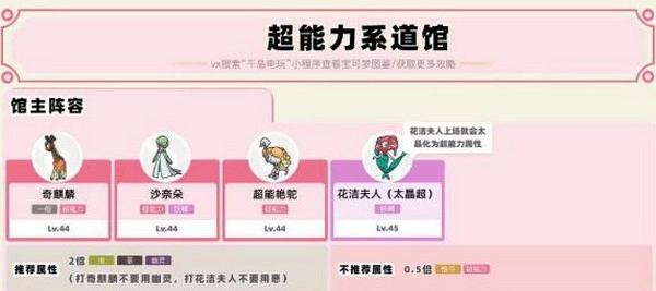 焙固镇的超能系馆主莉普,堪称大后期的强力馆主!她拥有四只高等级的宝可梦,单是沙奈朵就足以给你造成巨大威胁!不过草猫能够完美克制她的队伍,或者使用黑鲁加也能应对,需要注意的是,如果可以太晶化成其他属性,就尽量不要保持恶系。