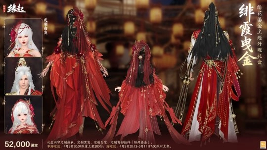礼盒包含定制成衣、定制黑发、定制白发、定制背部挂件「绯刃鎏金」。