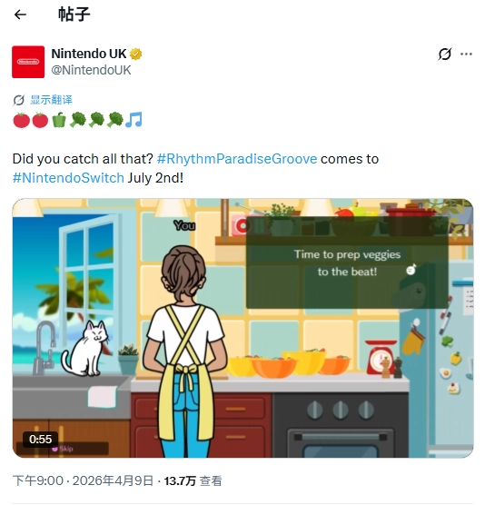 任天堂近日确认,旗下《节奏天国》系列的最新作品《节奏天国:奇迹之星》,计划于2026年7月2日在Nintendo Switch平台上线。这一消息最初由任天堂官方信息应用Nintendo Today发布,之后也在Twitter上同步公开。