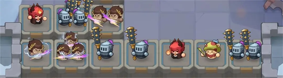 在这套阵容里,蘑菇头的核心作用是前期快速积累经济。和蘑菇头不同,法师、骑士的攻击距离偏短,蘑菇头刚好能填补这个短板,还能专门应对淤泥怪。