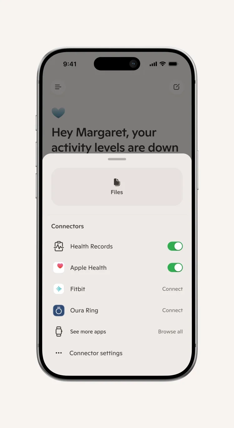 Microsoft指出,Copilot Health“不会替代你的医生”,也不用于提供医疗诊断或治疗服务,其作用是协助用户解读自身的健康数据。用户能够借助HealthEx导入美国5万多家医院与医疗机构的医疗记录,还能通过Function导入实验室检测结果。Copilot Health可兼容“50多款可穿戴设备”,像苹果、Oura和Fitbit的产品都包含在内。Copilot Health的主页会展示可穿戴设备的数据,比如当前步数,以及即将到来的预约提醒,具体显示内容取决于用户选择分享的数据。