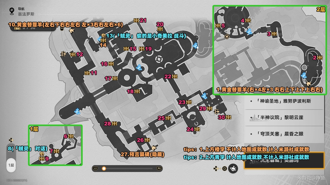 「3个黄金替罪羊」「1个预言算碑」「1个贼灵相关战利品」这几类物品,其数量不计入地图成就统计,仅会计入米游社的成就数量中。