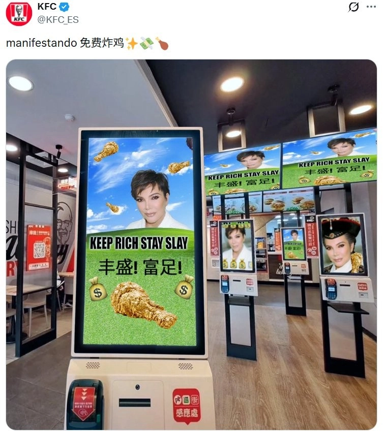 4月9日,西班牙肯德基官方在海外社交媒体平台上,应一位中国网友的提议发布了一条趣味视频,视频里融入了不少国内元素,还特意用醒目大字标注,庆祝国内特有的“疯狂星期四”活动。