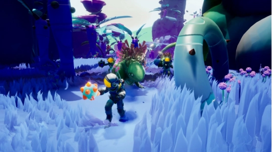 在这些奇妙的生命形态里,有一种叫“Carrotling”的生物,它们长得像胡萝卜,对一切都充满好奇,唯一的“威胁”就是实在太可爱了。另外还有“Grabcrabs”,它们的外壳上附着着可以利用的资源和物品,玩家可以靠近它们进行交换。这些不过是Tephra世界里众多生物中的一小部分,还有陆地、海洋、天空等更广阔的领域等着大家去探索发现。