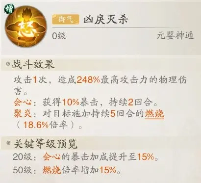 元婴期推荐:混元一气—元灵护体—离火庇护—炎龙舞—幽冥刹灭