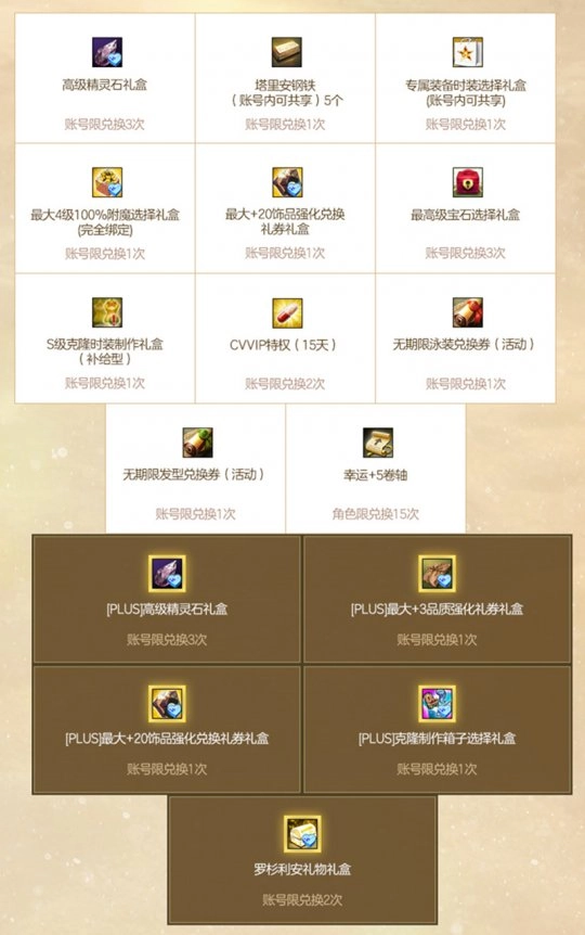 在2026PLUS黄金时间活动期间,英雄们既能享受周末与节假日的HOTTIME福利,通过完成任务获取黄金时间礼券,还可兑换最大+15武器强化兑换礼券礼盒、瓦德内结晶礼盒等高价值养成材料;开启礼盒得到的额外金币,更能兑换专属装备时装选择礼盒、CVVIP、S级克隆时装制作礼盒(补给型)等稀有高价值道具与外观奖励。