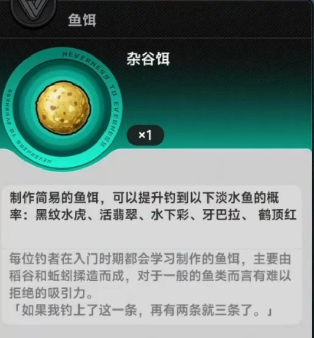 实测数据表明,采用这款饵料能让单位时间内的捕获率提高40%到65%,显著缩短任务完成时间。对于那些需要推进淡水区域主线任务、完善鱼类图鉴的玩家而言,杂谷饵是提升效率的最优战术选择。