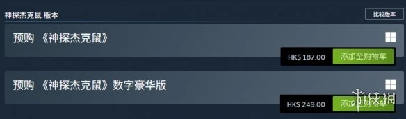 游戏《神探杰克鼠》的数字版在Steam国区的定价为:标准版95元,豪华版128元(包含DLC、原声音乐及漫画);主机数字版的价格区间约为29.99至39.99美元,折合人民币215到285元;而实体豪华版(Mouseburg Edition)的售价在49.99至59.99美元之间,其中还包含黑胶唱片等周边产品。