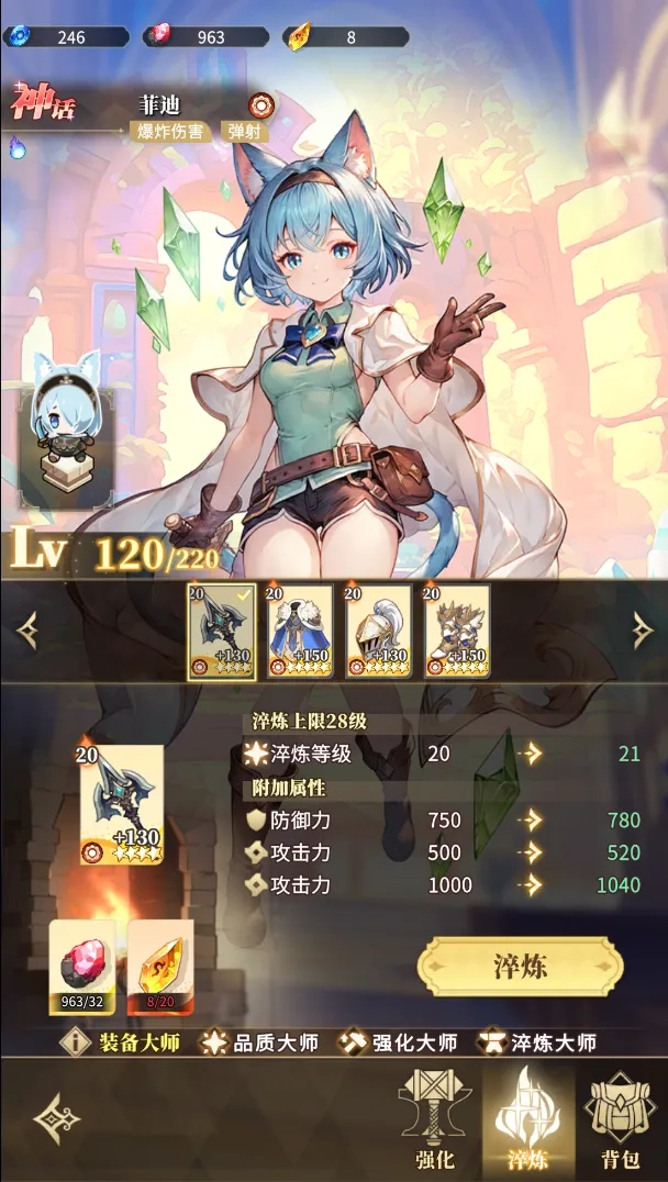 小提示:建议把装备强化和淬炼都平均升级。这样能触发装备大师的效果,给所有出战的伙伴提升属性。