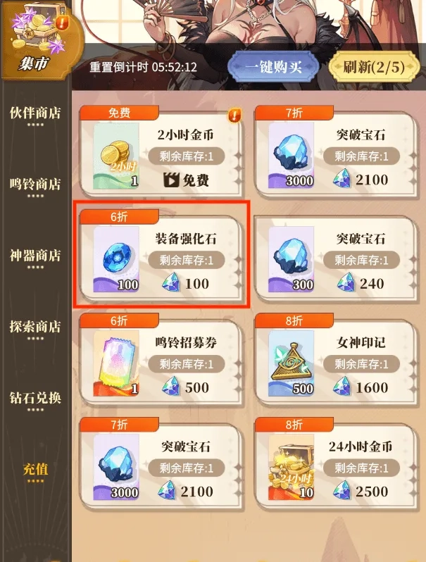 2)商店消耗钻石购买(只推荐购买打折的哦!)