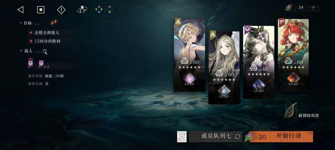 配队推荐:贝丽尔、狂想伊索尔德、洛伦兹蝴蝶与玛尔莎组合,这是余晖队的完全体阵容。