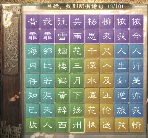 1、曲水飞花第一关【折柳赠友】答案(需按顺序正向连接,反向连接无效):