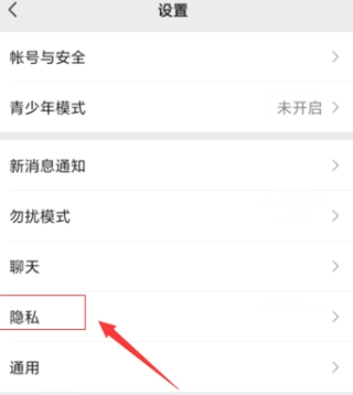 切换页面后,接着点击进入【隐私】设置。(如图所示)