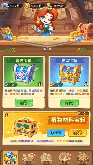 1、把植物池子升到V6,提升传说植物刷新概率。