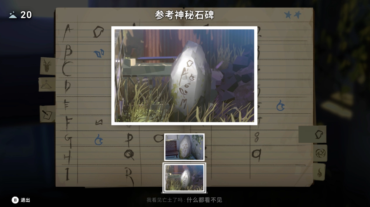 在玩法层面,《OPUS:心相吾山》虽然采用了全场景3D视角探索。在传统的叙事推进,走路模拟之外,添加了比重不小的解谜要素。这是一种“探索—记录—回忆”三位一体的体验。
