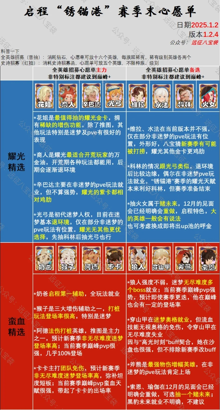 剑与远征启程锈锚港赛季已临近结束,赛季末期环境变动与预期调整颇为频繁,所以我打算再为大家整理一期心愿单攻略,核心是梳理那些我觉得影响重大或是即将带来影响的关键环境变量!