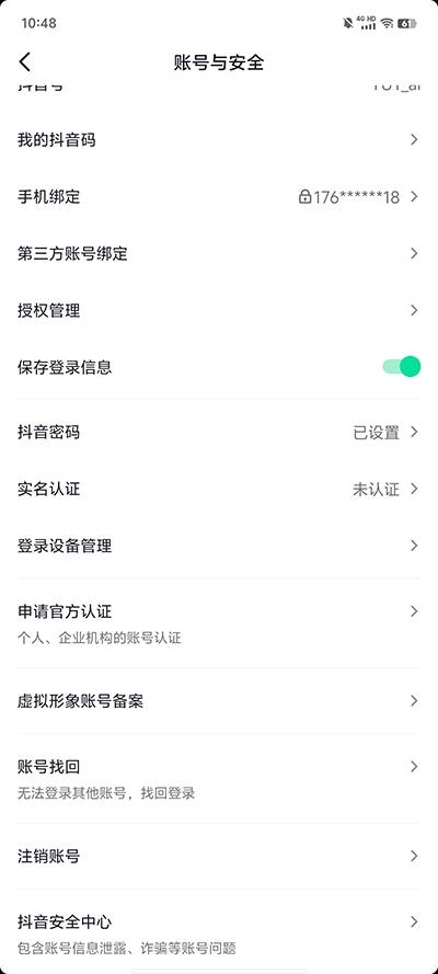 5、进入抖音安全中心页面后,找到并点击“注销账号”选项。