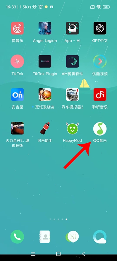 在手机系统桌面找到“QQ音乐”图标并点击,启动该应用。示意图如下: