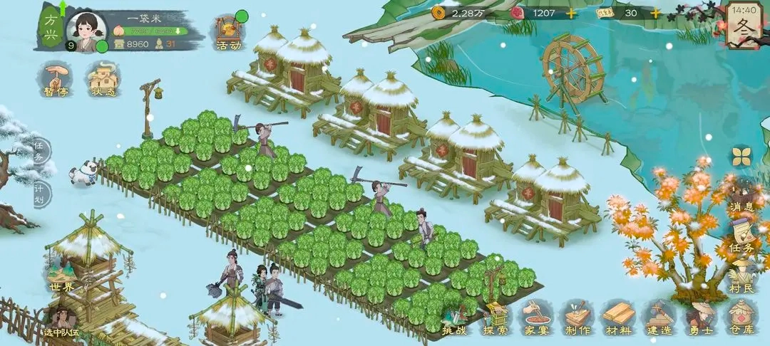后续解锁的水车、鱼塘、鸡舍以及新地图森林等内容里,都能获取大量食物,其中水车还可以提升种田的产量。