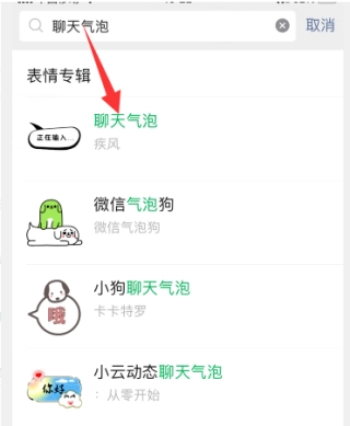 2、在上方搜索栏输入“聊天气泡”,然后点击“更多”选项。