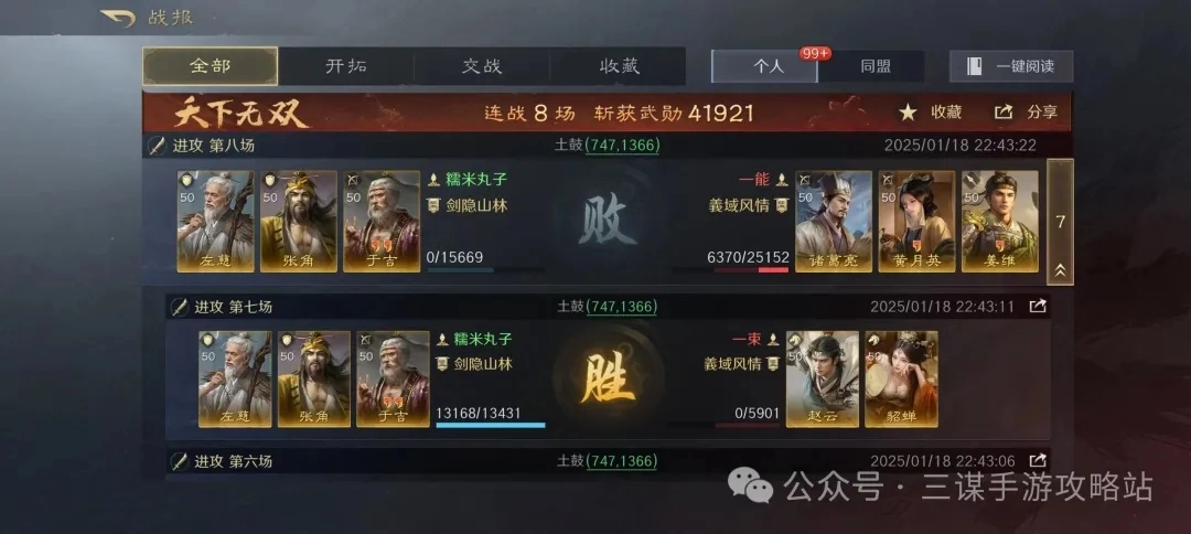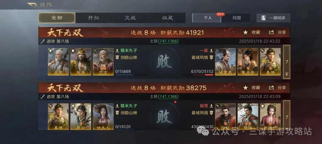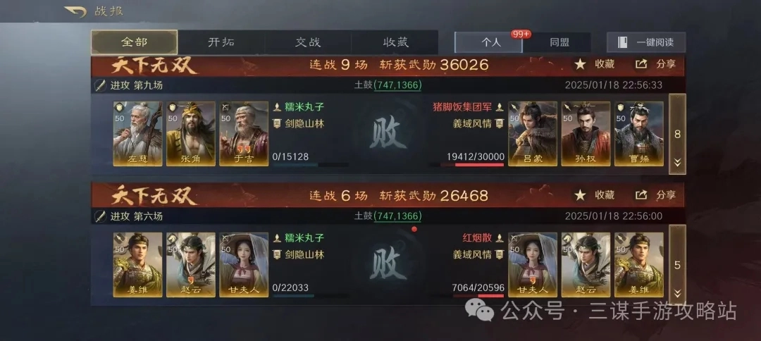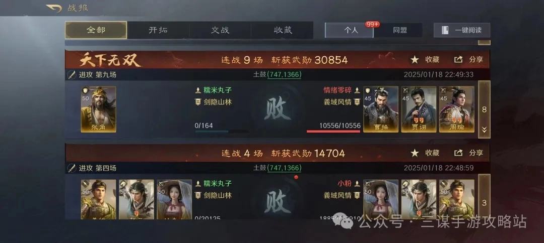 可以看到战报都是连续的,不是从收藏夹里挑出来的。