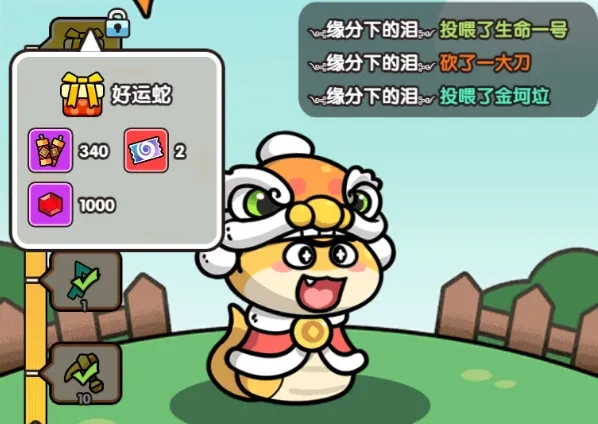 好运蛇的奖励包含:黄金镐头10个、哥布林村庄钥匙1把、经验水晶10个、活动道具340个、纪念卡券2张、宝石1000颗。