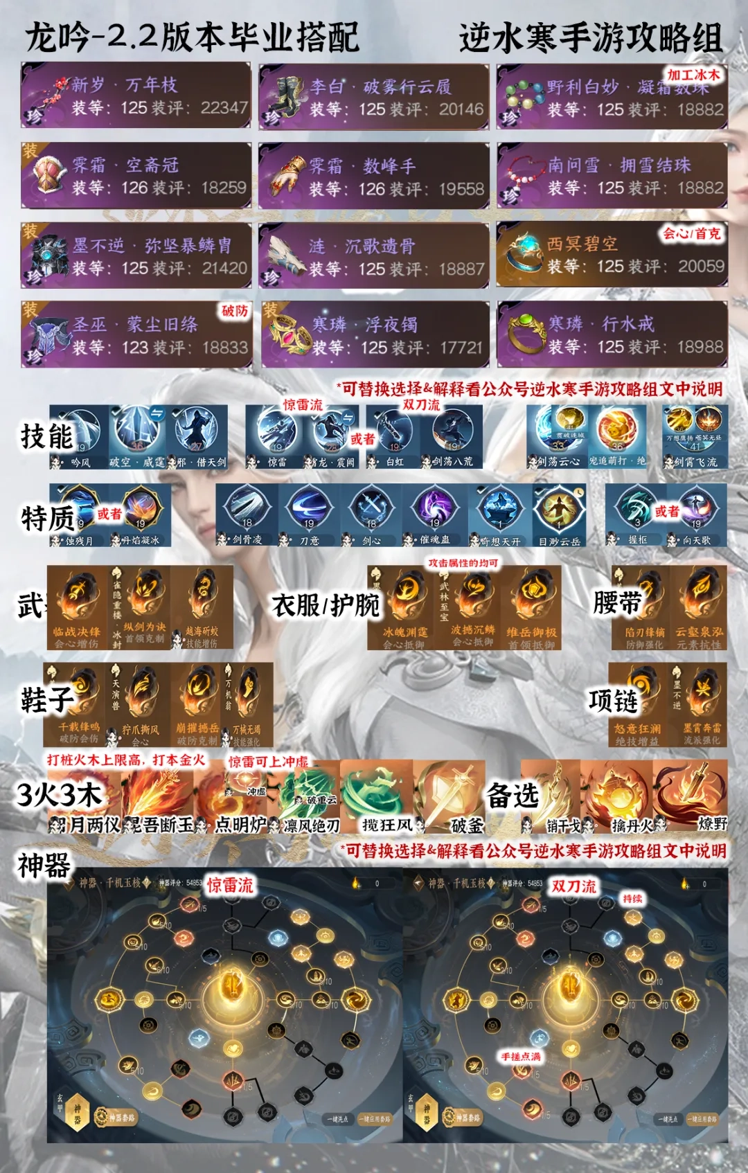 逆水寒手游2.2.4版本更新已经过去一段时间了,不少玩家也开始朝着毕业目标努力,认真搭配装备。本期攻略就以龙吟职业为例,分享该版本下的毕业配装方案,大家若有需要可以自行参考,并结合自身实际情况进行调整优化!
