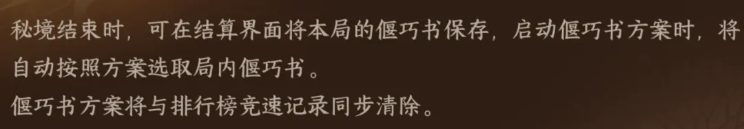 1、刷天赋的方法:遇到自己想要的天赋就选择,要是后续出现的天赋书都不是你需要的,就不选天赋,等秘境结束后保存偃巧书,这样就能把已选的天赋书保存下来,按照这个方式一本一本刷天赋。等刷好需要的天赋后,之后每次进入都会固定使用这些天赋。