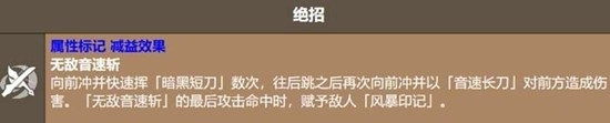 它的招牌技能是绝招“无敌音速斩”,不仅动作华丽,伤害也很可观。该技能先施展多段快速斩击,随后后撤,接着发起一次强力的突进斩,而最后一击同样可以附加“风暴印记”。