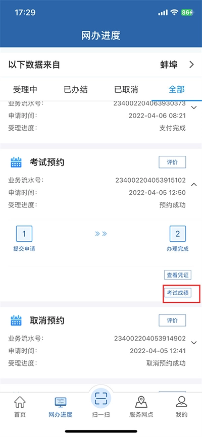 3、最后点击完成后,再点击【考试成绩】就能查看到了。