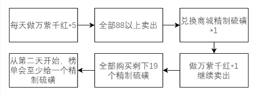 除了通过打夕兽制作出的5万紫千红外,在商城购买材料也能制作20万紫千红,不过需要消耗20宝钱兑换一个精致材料。若一天做20个,就要消耗400挂钱,做7天的话则需400×7=2800挂钱。总共可以制作181万紫千红(25+26×6),此外,购买128元手册获取的材料还能多做35个万紫千红。将这些全部燃放大约能得到11个璀璨宝钱。