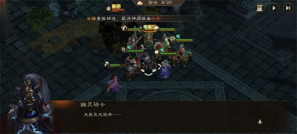 前几个回合先把敌将打残,第一次击败幽灵骑士后,他会下马分裂成一人一马两个敌人。马没有攻击能力,但会跑向骑士试图合体,所以我们得阻止它们靠近。