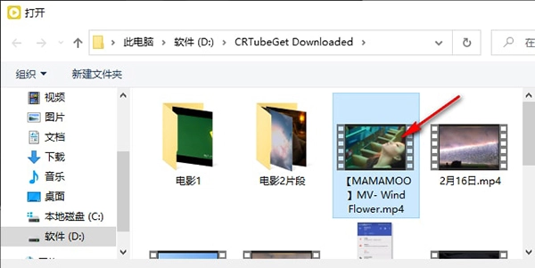 2、第二步,点击“打开文件”选项后,会进入文件夹页面,在这个页面里找到需要截取音频的目标视频文件,接着点击“打开”按钮即可。