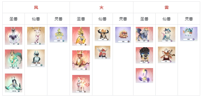 主宰世界里的异兽养成是游戏中颇为关键的玩法,修士能够孵化不同代数且带有元素词条的异兽,从而获取随机的属性增益。当前游戏内存在风、火、雷三种元素的异兽,每个元素类别下都对应着不同数量与品质的异兽,详细情况可参考下图: