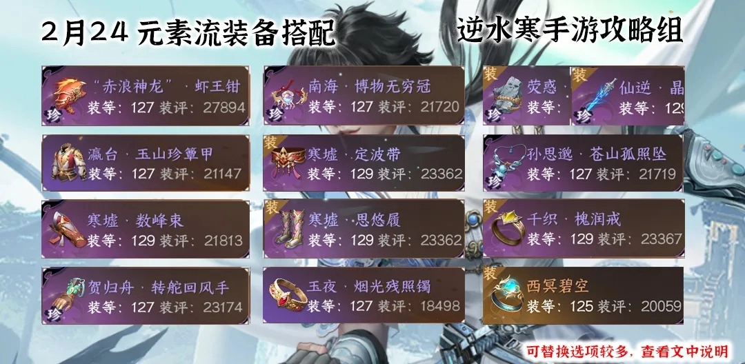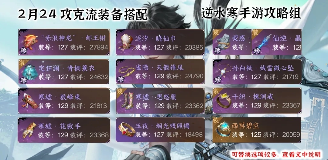 ②关于防具,127百炼四件套的收益比李白鞋搭配七独珍更高;如果没有129装等的装备,就用127装等的替代,实在没办法的话用紫装也可以。攻克流派要是没有雀隐腰带,那就用贺归舟元素手来代替。