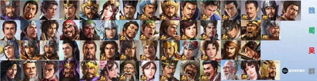 蜀国:刘备、诸葛亮、徐庶、张飞、关羽、赵云、庞统(S2)、姜维(S3)、马岱(S4)、关银屏(S5)、SP诸葛亮(S6)、关索(S7)、孟优(PK3)、魏延(PK4)