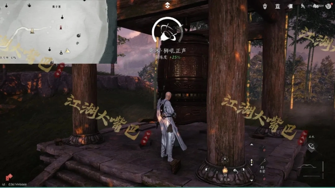 8、【狮吼正声】:到下图四个位置处,撞钟即可获得
