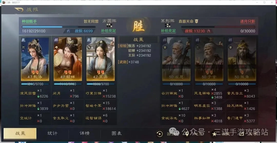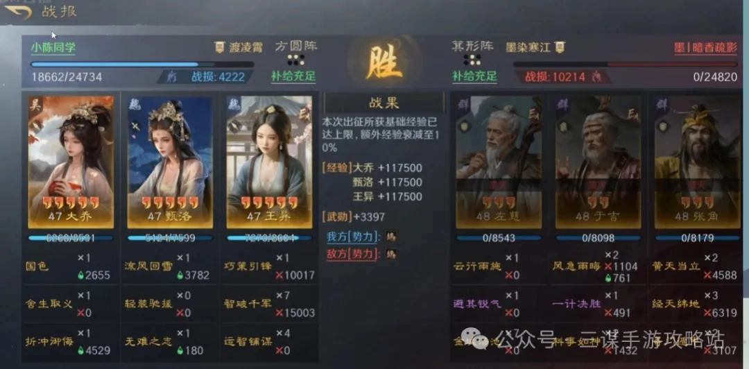 带了空城计、折冲御侮、舍生取义等核心战法的王异妹妹队,也付出了惨痛代价才拿下一队三仙。