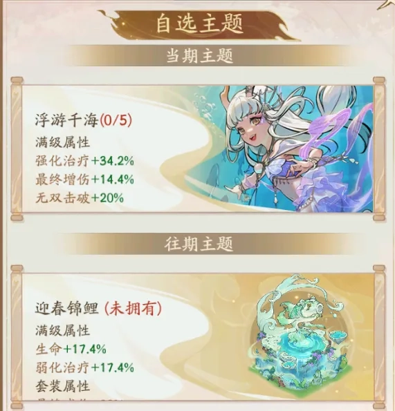 活动必须选择主题,主题分为当期主题和往期主题两种。这两种主题的奖励仅存在细微差异:在大奖选择与商店兑换方面,当期主题可选择并兑换扶摇仙缘,往期主题则能选择并兑换限定建筑;而新仙友、精怪洪荒等奖励是两者共有的,与主题无关。