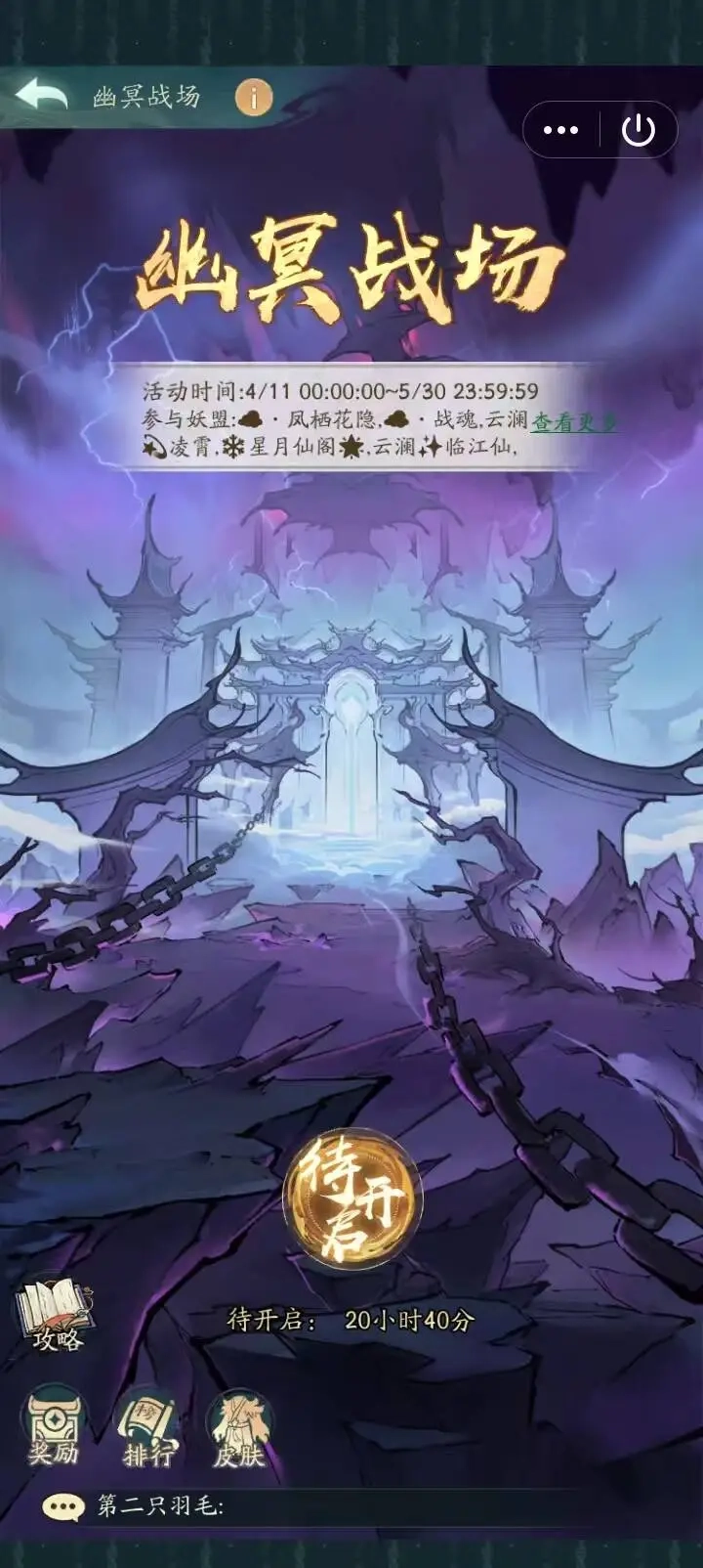 幽冥战场是游戏里的另一项特色活动,它是上古战场的进化版本。尽管目前还未正式上线,但我们已在海外服务器看到了该活动的相关内容,活动时长依旧为45天,还包含了全新的游戏玩法与新的奖励机制。