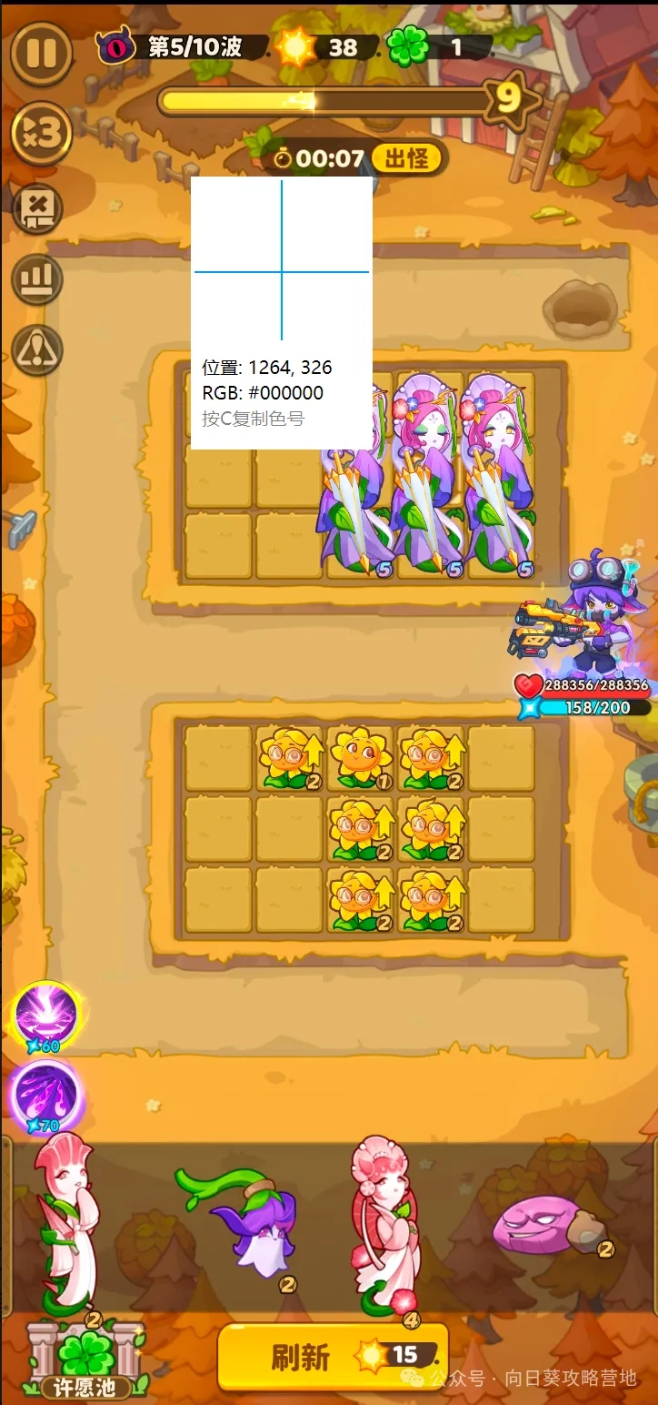 要是卡关了,连前两波都打得很吃力,那就得刷开局——游戏一启动立刻点暂停,看看初始技能,要是白蛇的技能不是灵潭迷踪,直接重开。前三波尽量多放白蛇,靠混乱来压制小怪。